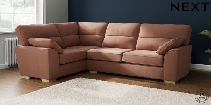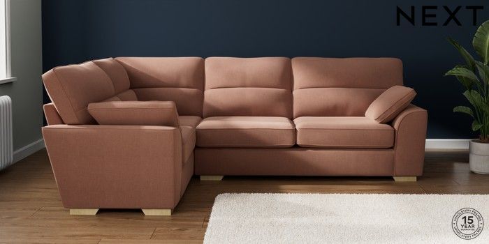 7.2.10 Stamford Highback Large Corner Sofa - Left Hand Relaxed Linen Look Light Rust Brown Large Square Angle - Light | Made Click here to use our website with more accessibility support, for example screen readers