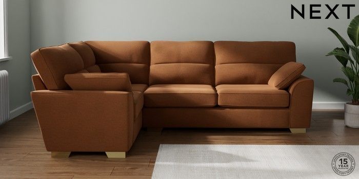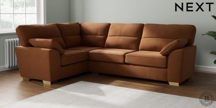 7.2.10 Stamford Highback Large Corner Sofa - Left Hand Ripple Chenille Mid Rust Brown Large Square Angle - Brushed Brass | Made Click here to use our website with more accessibility support, for example screen readers