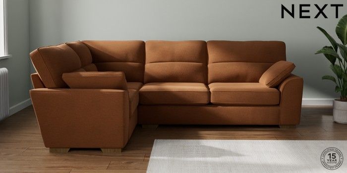 7.2.10 Stamford Highback Large Corner Sofa - Left Hand Ripple Chenille Mid Rust Brown Large Square Angle - Mid | Made Click here to use our website with more accessibility support, for example screen readers