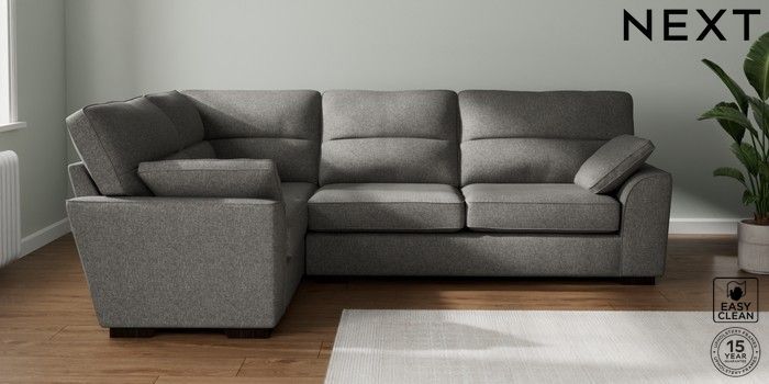 7.2.10 Stamford Highback Large Corner Sofa - Left Hand Tweedy Blend Easy Clean Dark Grey Large Square Angle - Dark | Made Click here to use our website with more accessibility support, for example screen readers