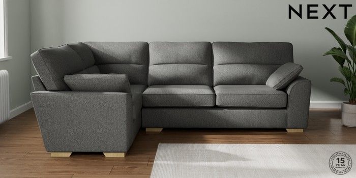 7.2.10 Stamford Highback Large Corner Sofa - Left Hand Tweedy Chenille Dark Grey Large Square Angle - Light | Made Click here to use our website with more accessibility support, for example screen readers