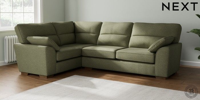 7.2.10 Stamford Highback Large Corner Sofa - Left Hand Tweedy Chenille Mid Moss Green Large Square Angle - Mid | Made Click here to use our website with more accessibility support, for example screen readers