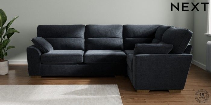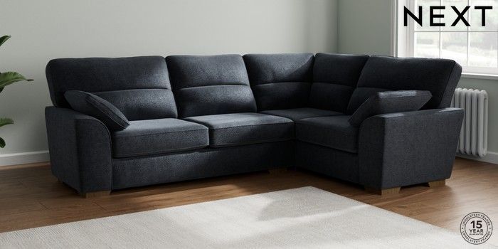 7.2.10 Stamford Highback Large Corner Sofa - Right Hand Boucle Chenille Dark Slate Blue Large Square Angle - Mid | Made Click here to use our website with more accessibility support, for example screen readers