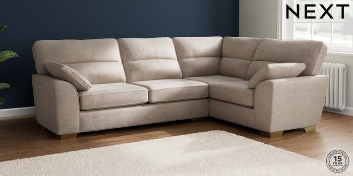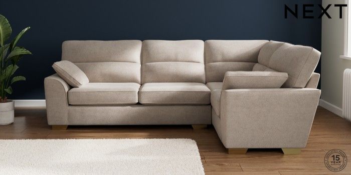 7.2.10 Stamford Highback Large Corner Sofa - Right Hand Boucle Chenille Light Natural Large Square Angle - Brushed Brass | Made Click here to use our website with more accessibility support, for example screen readers