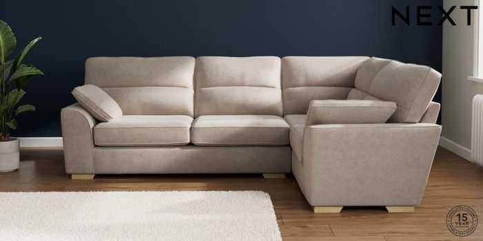7.2.10 Stamford Highback Large Corner Sofa - Right Hand Boucle Chenille Light Natural Large Square Angle - Light | Made Click here to use our website with more accessibility support, for example screen readers