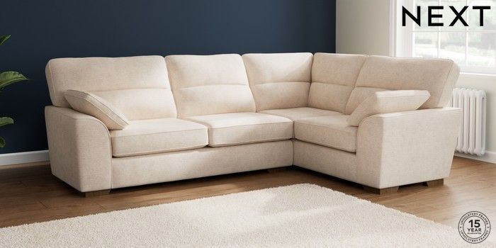 7.2.10 Stamford Highback Large Corner Sofa - Right Hand Boucle Chenille Oyster Large Square Angle - Mid | Made Click here to use our website with more accessibility support, for example screen readers
