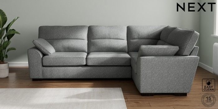 7.2.10 Stamford Highback Large Corner Sofa - Right Hand Chunky Boucle Easy Clean Mid Grey Large Square Angle - Dark | Made Click here to use our website with more accessibility support, for example screen readers