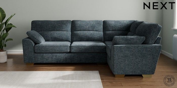 7.2.10 Stamford Highback Large Corner Sofa - Right Hand Chunky Chenille Dark Navy Blue Large Square Angle - Brushed Brass | Made Click here to use our website with more accessibility support, for example screen readers