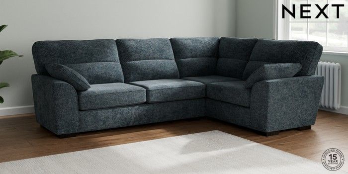 7.2.10 Stamford Highback Large Corner Sofa - Right Hand Chunky Chenille Dark Navy Blue Large Square Angle - Dark | Made Click here to use our website with more accessibility support, for example screen readers