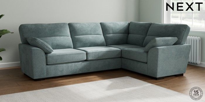 7.2.10 Stamford Highback Large Corner Sofa - Right Hand Chunky Chenille Light Teal Green Large Square Angle - Dark | Made Click here to use our website with more accessibility support, for example screen readers