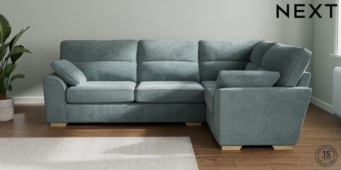 7.2.10 Stamford Highback Large Corner Sofa - Right Hand Chunky Chenille Light Teal Green Large Square Angle - Light | Made Click here to use our website with more accessibility support, for example screen readers