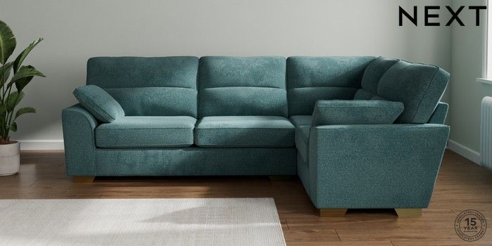 7.2.10 Stamford Highback Large Corner Sofa - Right Hand Chunky Chenille Mid Teal Green Large Square Angle - Brushed Brass | Made Click here to use our website with more accessibility support, for example screen readers