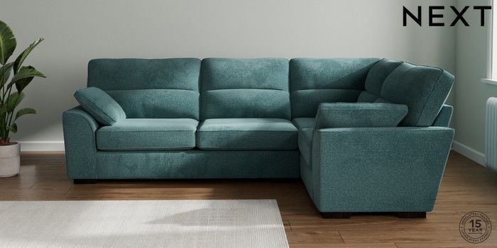 7.2.10 Stamford Highback Large Corner Sofa - Right Hand Chunky Chenille Mid Teal Green Large Square Angle - Dark | Made Click here to use our website with more accessibility support, for example screen readers