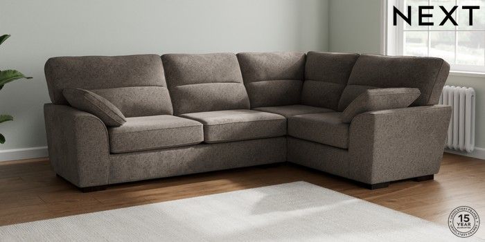 7.2.10 Stamford Highback Large Corner Sofa - Right Hand Chunky Chenille Mink Brown Large Square Angle - Dark | Made Click here to use our website with more accessibility support, for example screen readers