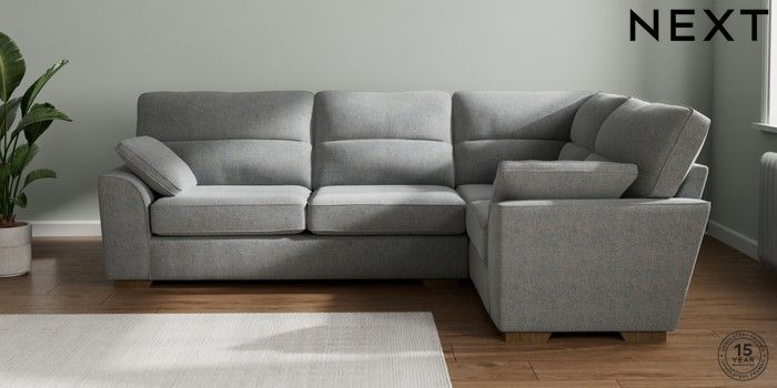 7.2.10 Stamford Highback Large Corner Sofa - Right Hand Chunky Marl Mid Grey Large Square Angle - Mid | Made Click here to use our website with more accessibility support, for example screen readers