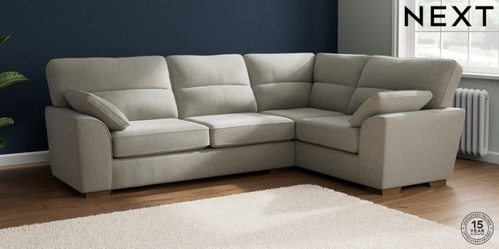 7.2.10 Stamford Highback Large Corner Sofa - Right Hand Chunky Texture Dove Large Square Angle - Mid | Made Click here to use our website with more accessibility support, for example screen readers