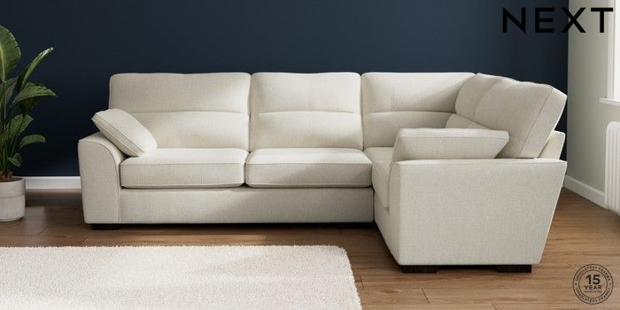 7.2.10 Stamford Highback Large Corner Sofa - Right Hand Chunky Texture Oyster Large Square Angle - Dark | Made Click here to use our website with more accessibility support, for example screen readers