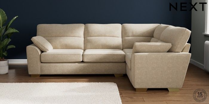7.2.10 Stamford Highback Large Corner Sofa - Right Hand Chunky Weave Cream Large Square Angle - Brushed Brass | Made Click here to use our website with more accessibility support, for example screen readers