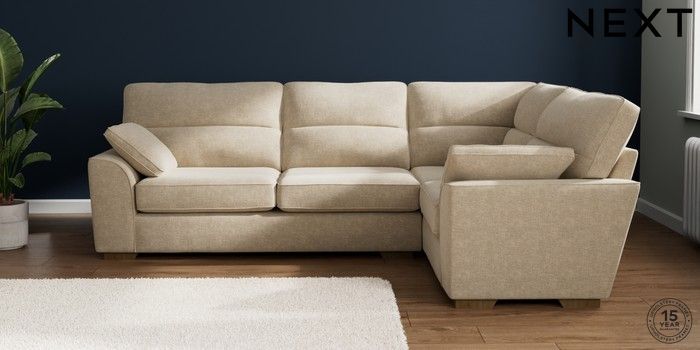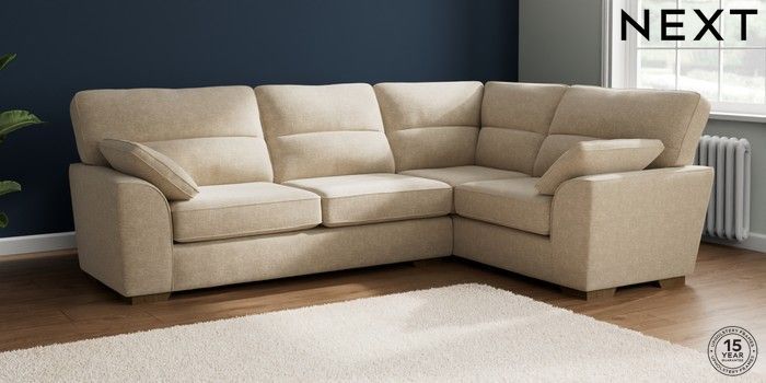 7.2.10 Stamford Highback Large Corner Sofa - Right Hand Chunky Weave Cream Large Square Angle - Mid | Made Click here to use our website with more accessibility support, for example screen readers