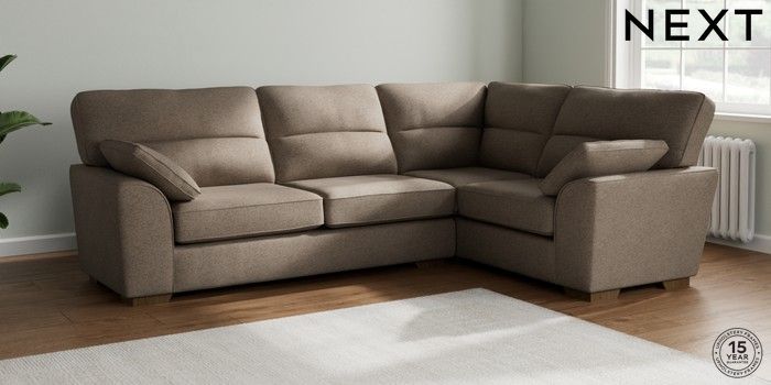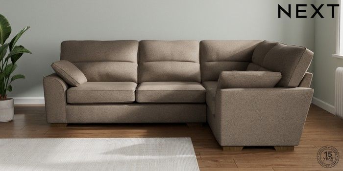 7.2.10 Stamford Highback Large Corner Sofa - Right Hand Chunky Weave Dark Natural Large Square Angle - Mid | Made Click here to use our website with more accessibility support, for example screen readers