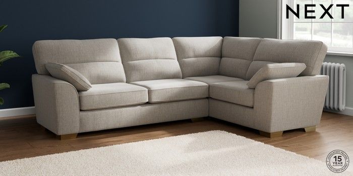 7.2.10 Stamford Highback Large Corner Sofa - Right Hand Chunky Weave Dove Grey Large Square Angle - Brushed Brass | Made Click here to use our website with more accessibility support, for example screen readers