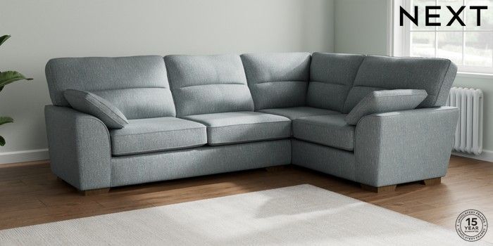 7.2.10 Stamford Highback Large Corner Sofa - Right Hand Chunky Weave Mid Blue Large Square Angle - Mid | Made Click here to use our website with more accessibility support, for example screen readers