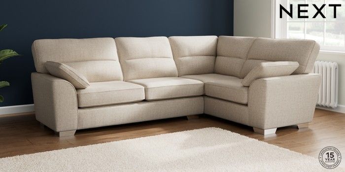 7.2.10 Stamford Highback Large Corner Sofa - Right Hand Chunky Weave Mid Natural Large Square Angle - Chrome Metal | Made Click here to use our website with more accessibility support, for example screen readers