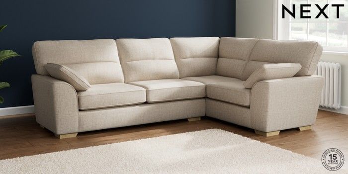 7.2.10 Stamford Highback Large Corner Sofa - Right Hand Chunky Weave Mid Natural Large Square Angle - Light | Made Click here to use our website with more accessibility support, for example screen readers