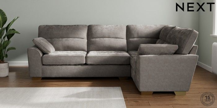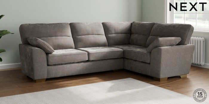 7.2.10 Stamford Highback Large Corner Sofa - Right Hand Distressed Velour French Grey Large Square Angle - Brushed Brass | Made Click here to use our website with more accessibility support, for example screen readers