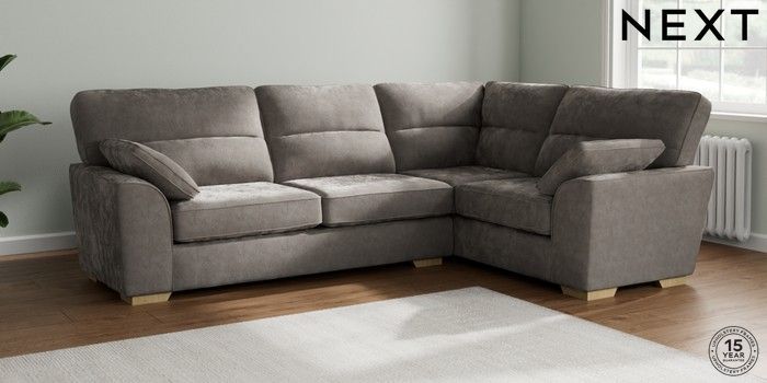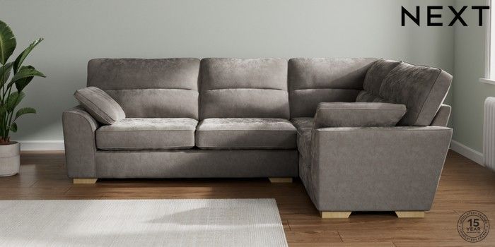 7.2.10 Stamford Highback Large Corner Sofa - Right Hand Distressed Velour French Grey Large Square Angle - Light | Made Click here to use our website with more accessibility support, for example screen readers