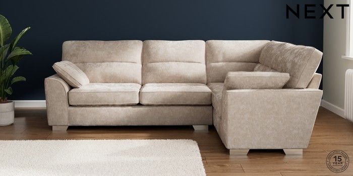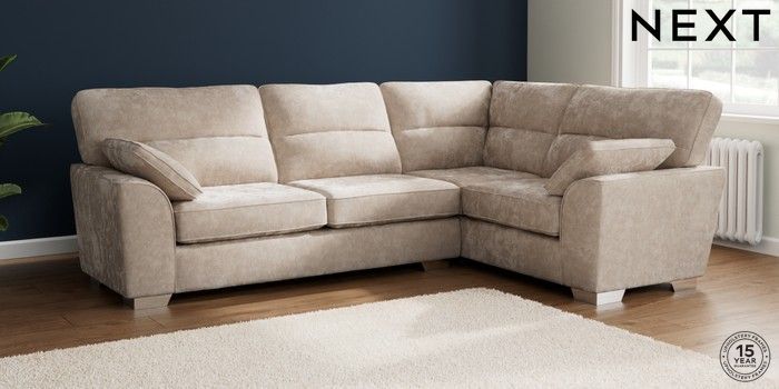 7.2.10 Stamford Highback Large Corner Sofa - Right Hand Distressed Velour Mid Natural Large Square Angle - Chrome Metal | Made Click here to use our website with more accessibility support, for example screen readers