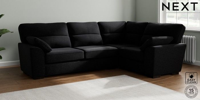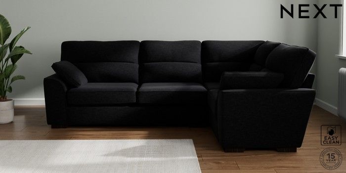 7.2.10 Stamford Highback Large Corner Sofa - Right Hand Fine Chenille Easy Clean Black Large Square Angle - Dark | Made Click here to use our website with more accessibility support, for example screen readers