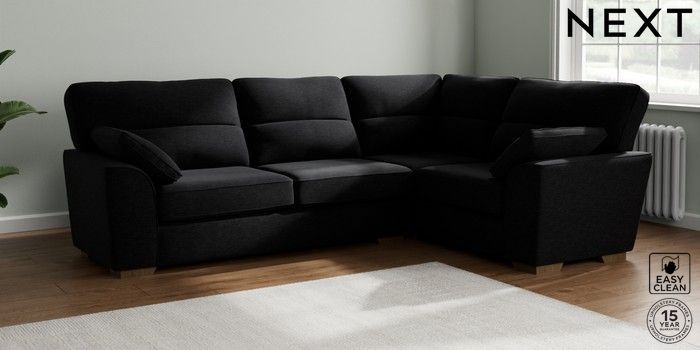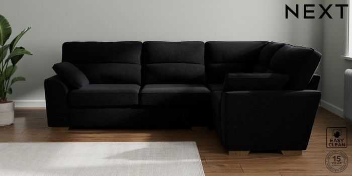 7.2.10 Stamford Highback Large Corner Sofa - Right Hand Fine Chenille Easy Clean Black Large Square Angle - Mid | Made Click here to use our website with more accessibility support, for example screen readers
