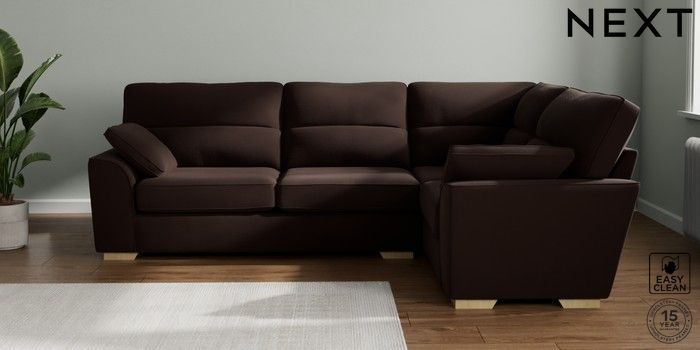 7.2.10 Stamford Highback Large Corner Sofa - Right Hand Fine Chenille Easy Clean Chocolate Brown Large Square Angle - Light | Made Click here to use our website with more accessibility support, for example screen readers