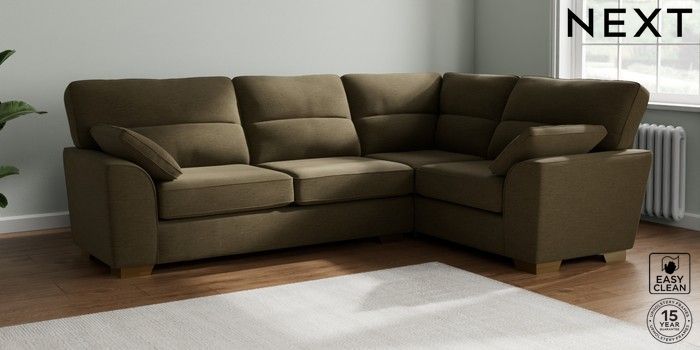 7.2.10 Stamford Highback Large Corner Sofa - Right Hand Fine Chenille Easy Clean Dark Moss Green Large Square Angle - Brushed Brass | Made Click here to use our website with more accessibility support, for example screen readers