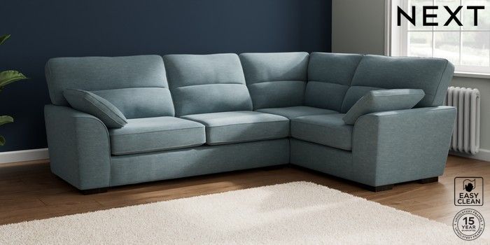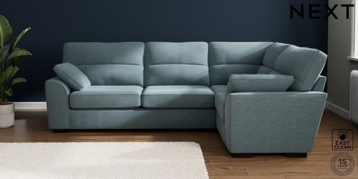 7.2.10 Stamford Highback Large Corner Sofa - Right Hand Fine Chenille Easy Clean Mid Blue Large Square Angle - Dark | Made Click here to use our website with more accessibility support, for example screen readers