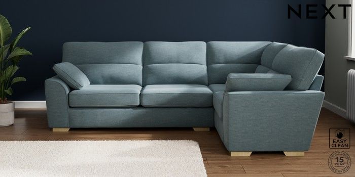 7.2.10 Stamford Highback Large Corner Sofa - Right Hand Fine Chenille Easy Clean Mid Blue Large Square Angle - Light | Made Click here to use our website with more accessibility support, for example screen readers