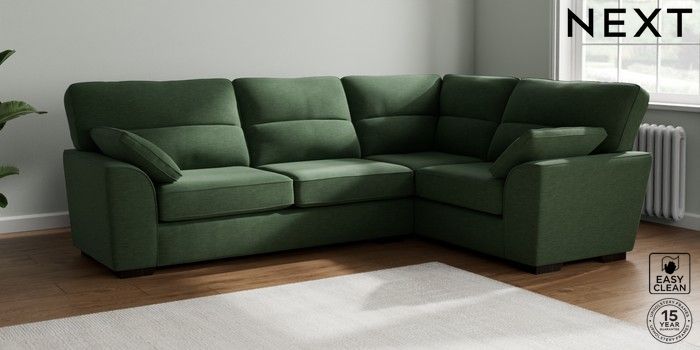 7.2.10 Stamford Highback Large Corner Sofa - Right Hand Fine Chenille Easy Clean Mid Khaki Green Large Square Angle - Dark | Made Click here to use our website with more accessibility support, for example screen readers