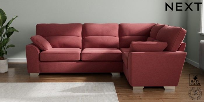 7.2.10 Stamford Highback Large Corner Sofa - Right Hand Fine Chenille Easy Clean Mid Pink Large Square Angle - Chrome Metal | Made Click here to use our website with more accessibility support, for example screen readers