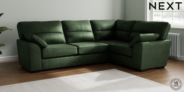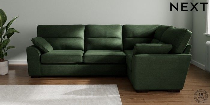7.2.10 Stamford Highback Large Corner Sofa - Right Hand Luxe Chenille Dark Green Large Square Angle - Dark | Made Click here to use our website with more accessibility support, for example screen readers