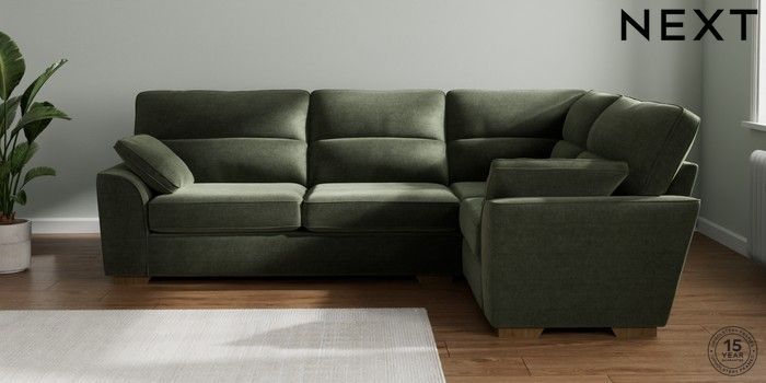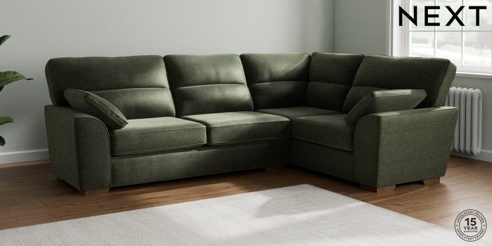 7.2.10 Stamford Highback Large Corner Sofa - Right Hand Luxe Chenille Mid Green Large Square Angle - Mid | Made Click here to use our website with more accessibility support, for example screen readers
