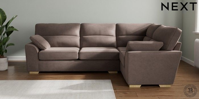 7.2.10 Stamford Highback Large Corner Sofa - Right Hand Luxe Chenille Mink Brown Large Square Angle - Light | Made Click here to use our website with more accessibility support, for example screen readers