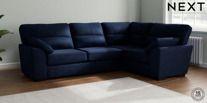 7.2.10 Stamford Highback Large Corner Sofa - Right Hand Luxe Chenille Navy Blue Large Square Angle - Dark | Made Click here to use our website with more accessibility support, for example screen readers