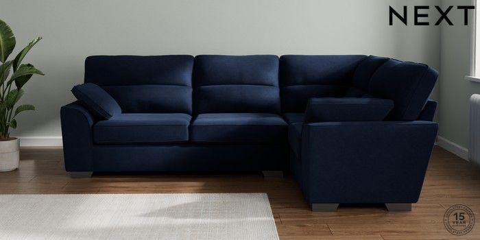 7.2.10 Stamford Highback Large Corner Sofa - Right Hand Luxe Chenille Navy Blue Large Square Angle - Gunmetal | Made Click here to use our website with more accessibility support, for example screen readers