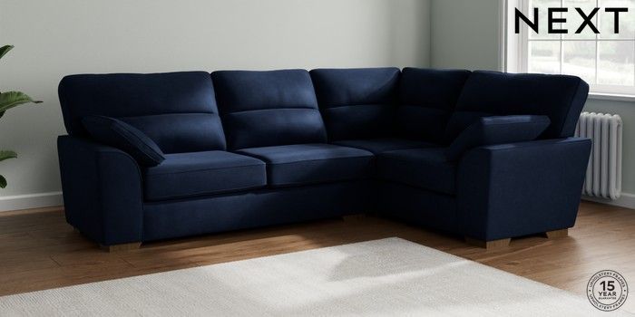 7.2.10 Stamford Highback Large Corner Sofa - Right Hand Luxe Chenille Navy Blue Large Square Angle - Mid | Made Click here to use our website with more accessibility support, for example screen readers