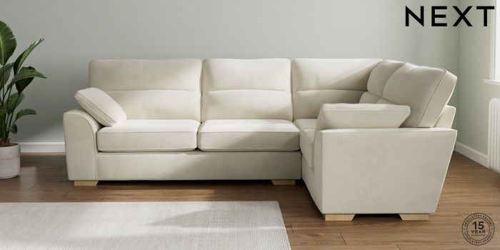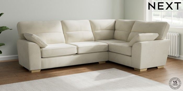 7.2.10 Stamford Highback Large Corner Sofa - Right Hand Luxe Chenille Oyster Large Square Angle - Light | Made Click here to use our website with more accessibility support, for example screen readers