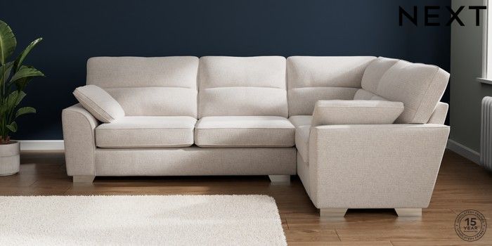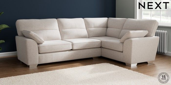 7.2.10 Stamford Highback Large Corner Sofa - Right Hand Multi Weave Oyster Large Square Angle - Chrome Metal | Made Click here to use our website with more accessibility support, for example screen readers