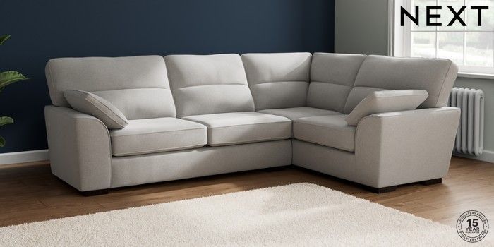 7.2.10 Stamford Highback Large Corner Sofa - Right Hand Natural Mix Light Grey Large Square Angle - Dark | Made Click here to use our website with more accessibility support, for example screen readers