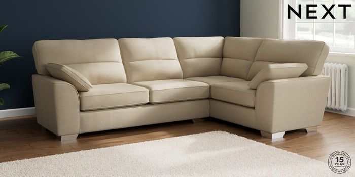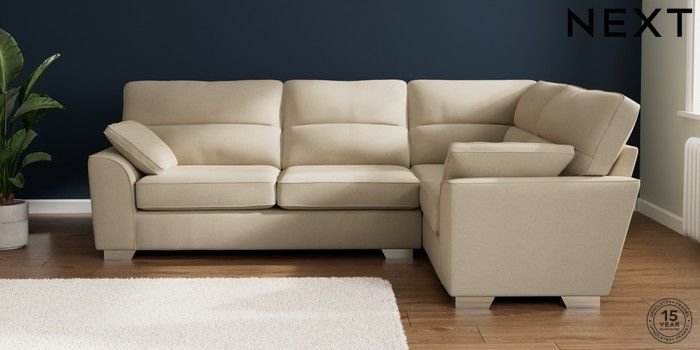7.2.10 Stamford Highback Large Corner Sofa - Right Hand Natural Mix Light Natural Large Square Angle - Chrome Metal | Made Click here to use our website with more accessibility support, for example screen readers