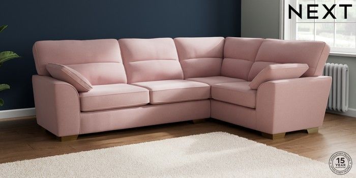 7.2.10 Stamford Highback Large Corner Sofa - Right Hand Natural Mix Light Rose Pink Large Square Angle - Brushed Brass | Made Click here to use our website with more accessibility support, for example screen readers